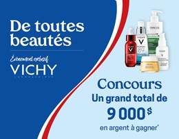 Achetez 2 produits Vichy et courez la chance de gagner 1 de 5 séjours d'une valeur de 1,500 $.