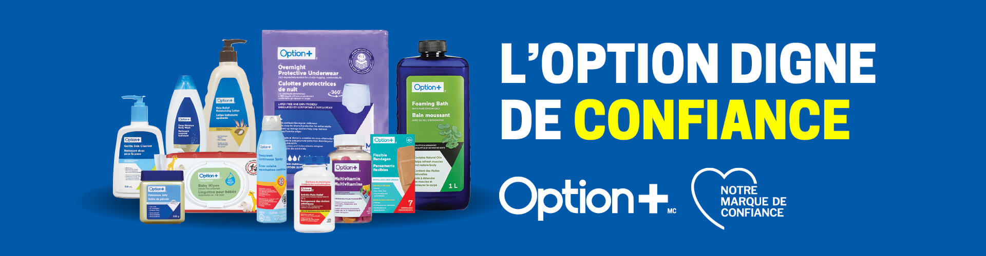 Tous les produits Option+ de santé et de mieux-être offrent la même qualité, ou une qualité supérieure, que les grandes marques nationales, et ce, à prix inférieur.